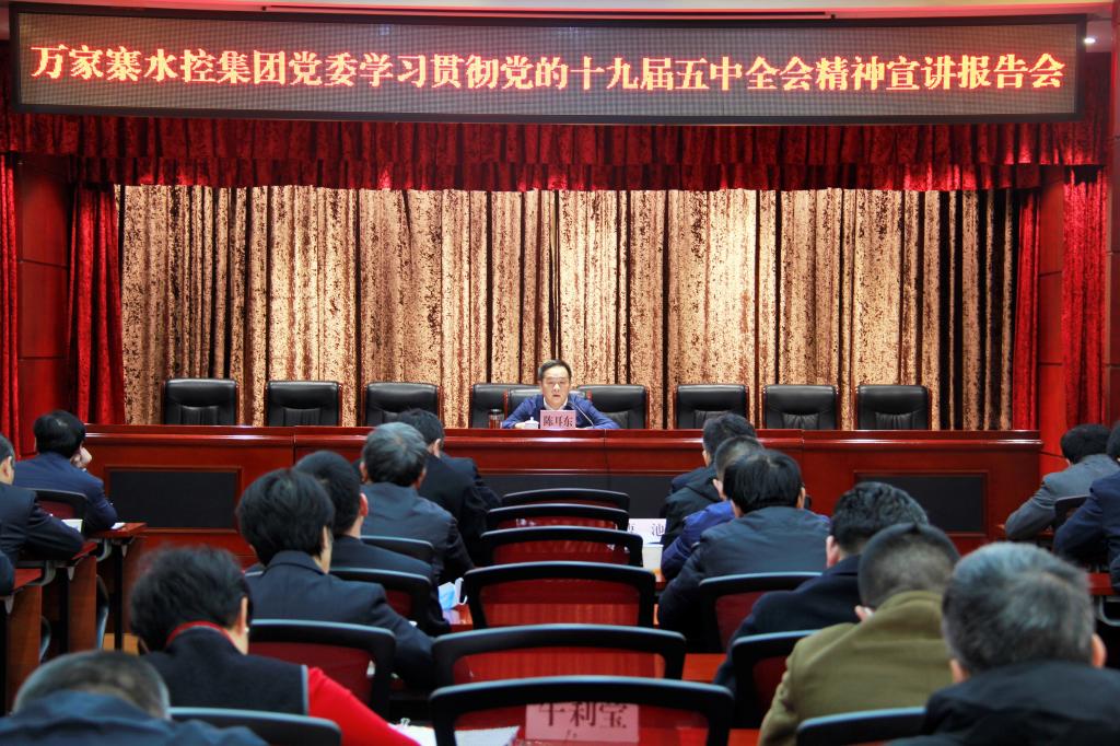 11月27日上午,萬(wàn)家寨水務(wù)控股集團(tuán)黨委書記、董事長(zhǎng)陳耳東作學(xué)習(xí)貫徹黨的十九屆五中全會(huì)精神宣講報(bào)告。黨委班子成員范世平、王晉斌、李俊剛、蘭康杰、曹池、呼運(yùn)平、常建忠及副總工程師、紀(jì)委副書記,各部室、中心、單位主要負(fù)責(zé)人等近百名黨員干部聆聽(tīng)了報(bào)告。
