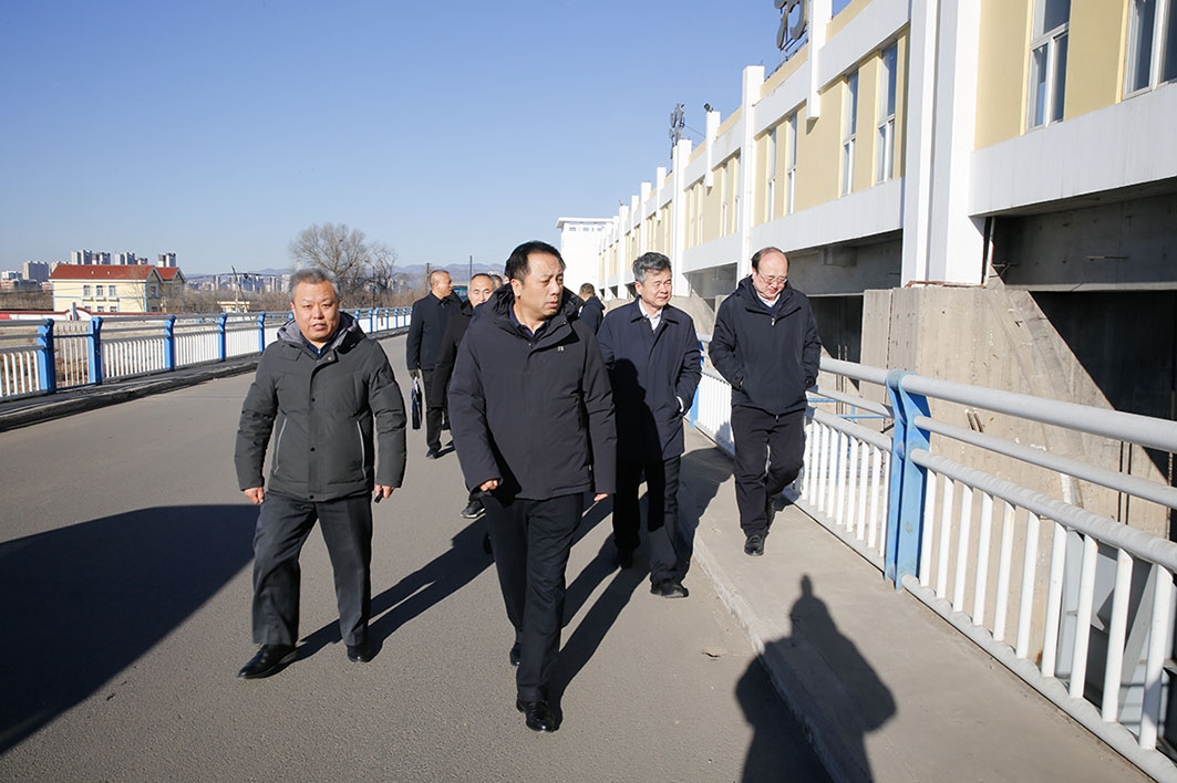 在汾河二壩供水服務(wù)中心,蘭康杰查看了供水監(jiān)控室、職工宿舍等辦公和生活環(huán)境,聽取了中心負責人關(guān)于汾河灌區(qū)冬澆灌溉生產(chǎn)運行情況的介紹,與一線職工親切交談,詢問了解灌溉水量調(diào)度管理、職工生產(chǎn)生活和春節(jié)期間應(yīng)急值班安排,并來到大壩實地查看閘門設(shè)施設(shè)備、河道供水運行等情況。