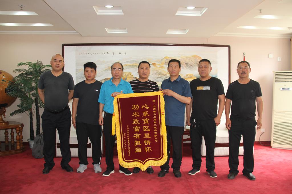 6月2日上午,臨縣曲峪鎮(zhèn)黨委副書記賀建軍一行來(lái)到水工局公司,代表鎮(zhèn)黨委、鎮(zhèn)政府和駐地百姓送來(lái)“心系貧區(qū)顯情懷、助農(nóng)致富有擔(dān)當(dāng)”、“扶貧幫困伸援手、心系百姓獻(xiàn)真情”、“第一書記鑄就鄉(xiāng)情、忘我為民初心不變”、“盡職盡責(zé)精準(zhǔn)幫扶、傾情傾力脫貧攻堅(jiān)”四面錦旗,誠(chéng)摯感謝公司和駐村“第一書記”在精準(zhǔn)幫扶工作中真情實(shí)意為村民辦實(shí)事、做好事、解難事,組織籌辦柏嶺上種養(yǎng)專業(yè)合作社,為貧困戶增加收入,還解決了村民飲水不便等諸多問(wèn)題。每一面錦旗不僅彰顯了榮譽(yù)和信任,更體現(xiàn)了鞭策與責(zé)任,將激勵(lì)“第一書記”以更高標(biāo)準(zhǔn)做好幫扶工作,切實(shí)為群眾辦實(shí)事,做出更加優(yōu)異的成績(jī)。