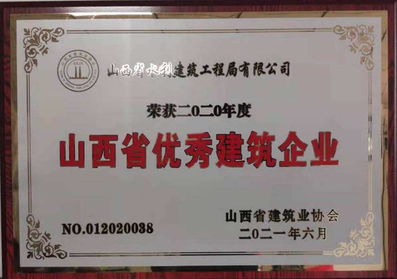 6月30日,山西省建筑業(yè)協(xié)會依據(jù)省建筑業(yè)協(xié)會四屆三次理事會暨會員代表大會表決通過的《山西省建筑業(yè)協(xié)會章程》,評選山西省水利建筑工程局有限公司為“2020年度山西省優(yōu)秀建筑企業(yè)”。