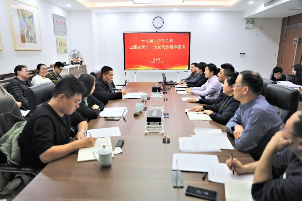 11月25日,萬(wàn)家寨水控集團(tuán)黨委專(zhuān)職副書(shū)記、副董事長(zhǎng)范世平在文化公司進(jìn)行黨的十九屆六中全會(huì)精神和省第十二次黨代會(huì)精神宣講。