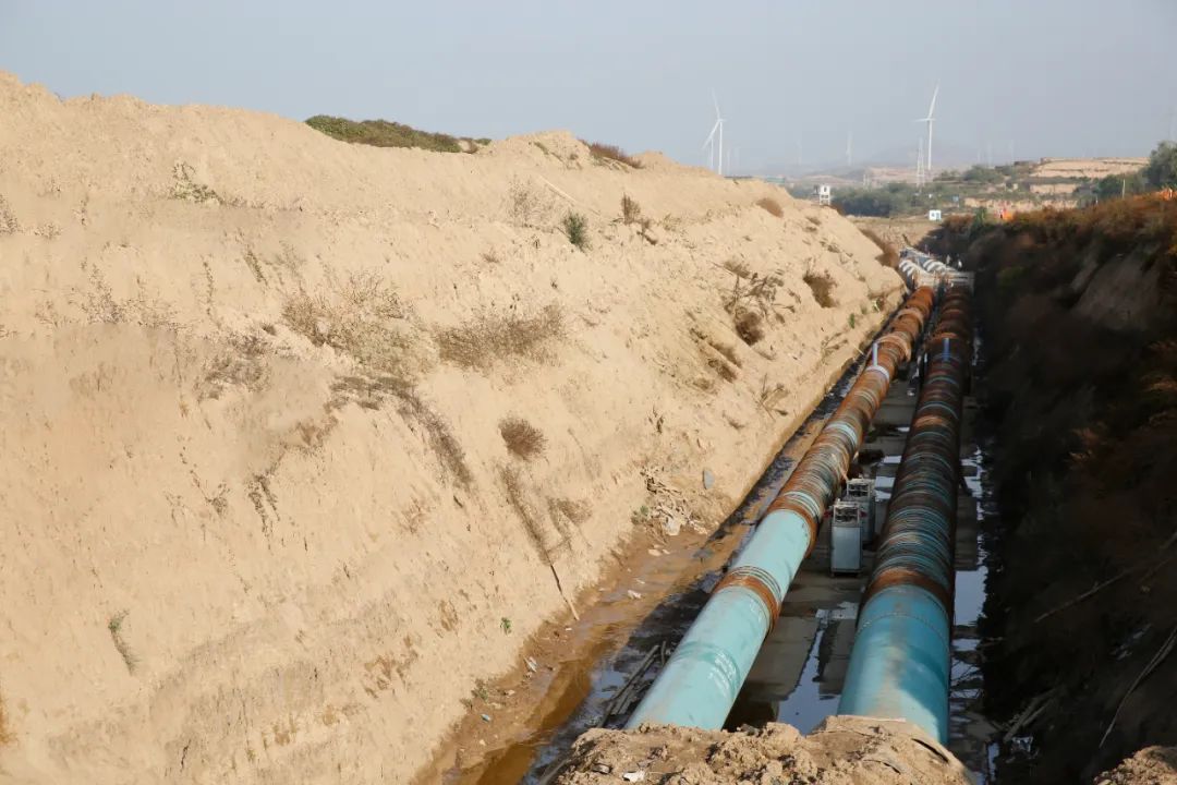 ▲施工15標(biāo)全程55.621公里,目前已開挖30公里,管線鋪設(shè)23公里。圖為東一干邊坡開挖管道安裝