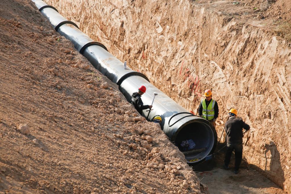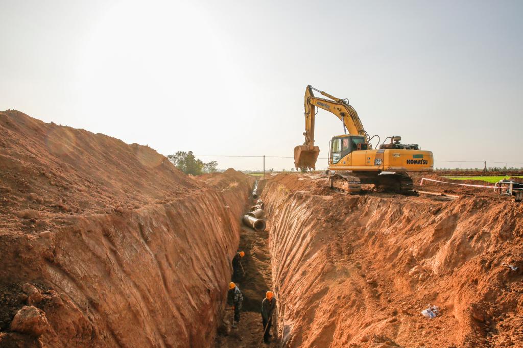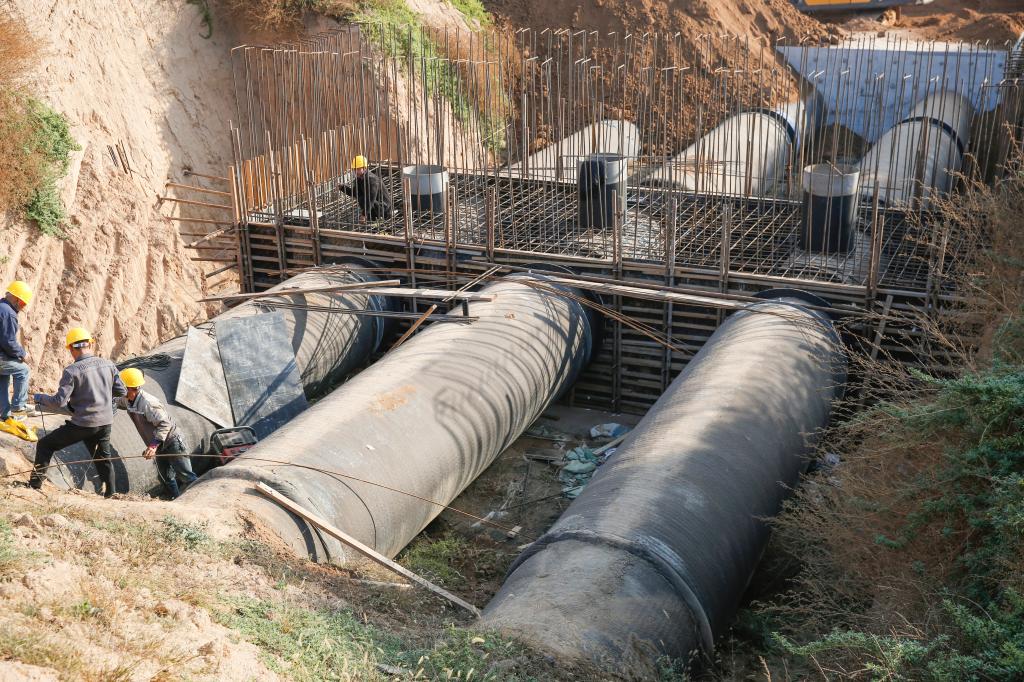 ▲施工13標(biāo)全程34.8公里,目前已完成24.7公里。圖為涑水壓力泵站二號(hào)壓力管線排氣閥井施工