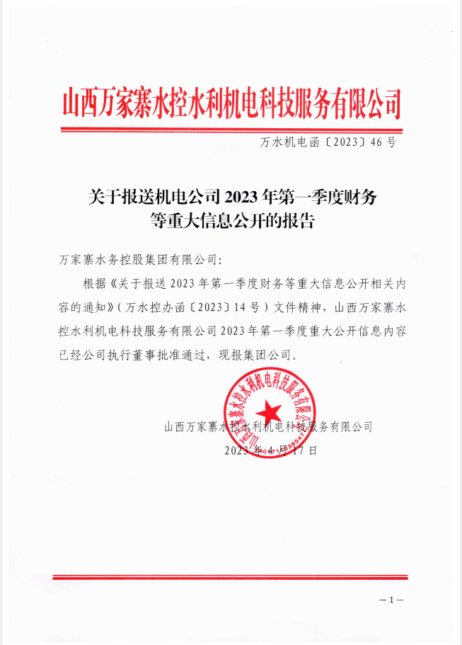 山西海子灣水庫(kù)開(kāi)發(fā)有限公司2023年第一季度信息公...