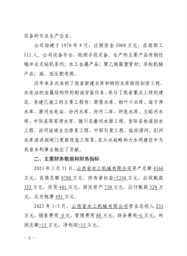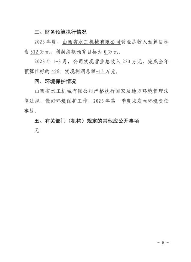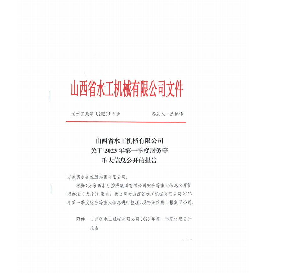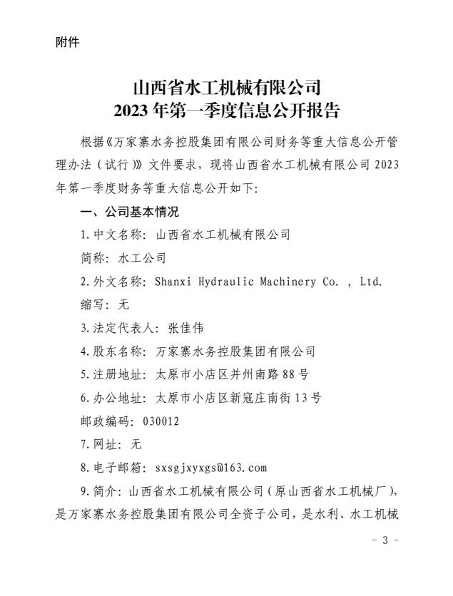 山西萬家寨水控水資源有限公司2023年第一季度信息...