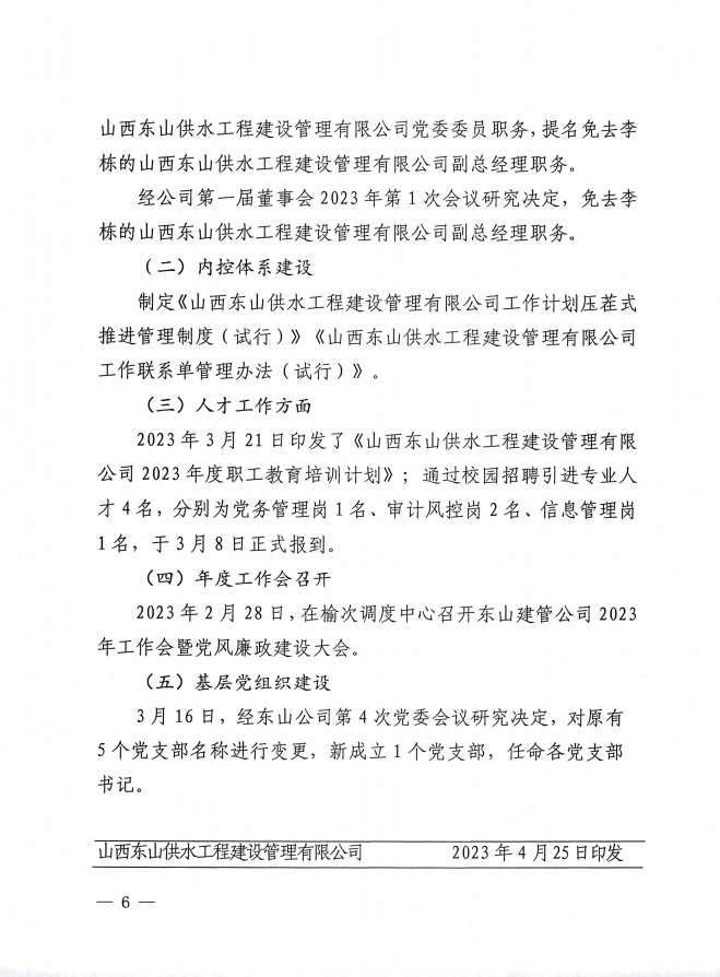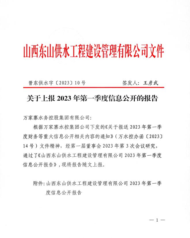 山西水務(wù)工程建設(shè)監(jiān)理有限公司2023年第一季度信息...