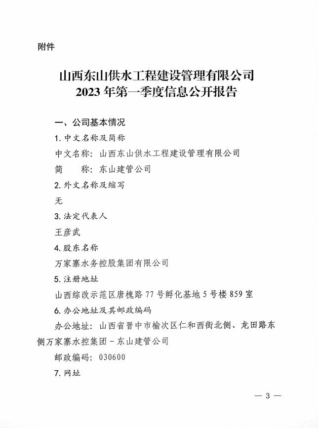 山西唐河水電開發(fā)有限責任公司2023年第一季度信息...