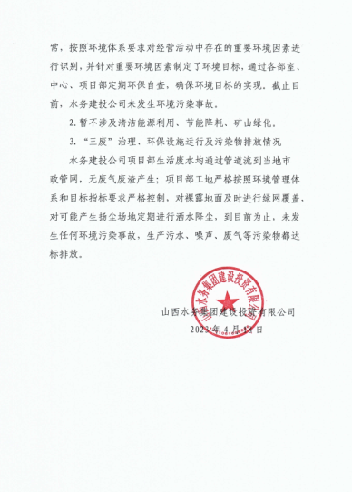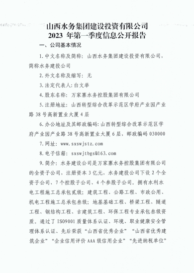 山西柏葉口水庫(kù)管理有限公司2023年度第一季度信息...