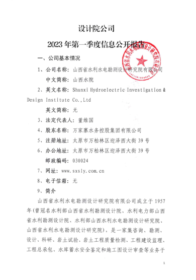 山西水務(wù)集團(tuán)建設(shè)投資有限公司2023年第一季度信息...