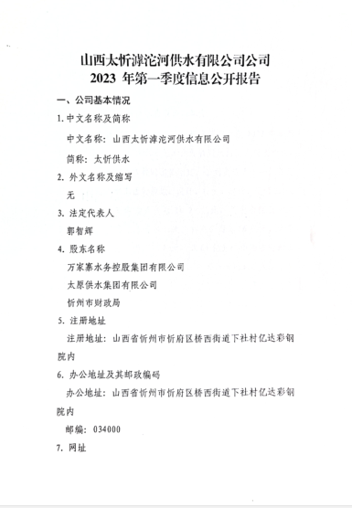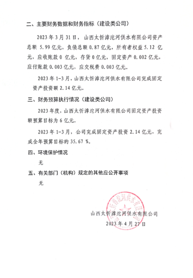 山西汾河水庫管理有限公司2023年第一季度信息公開...