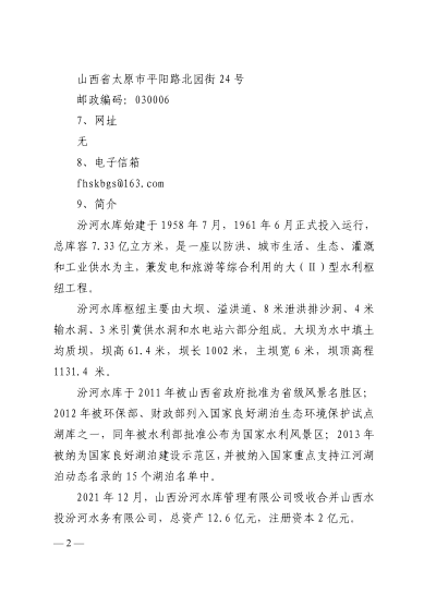 山西汾河水庫管理有限公司