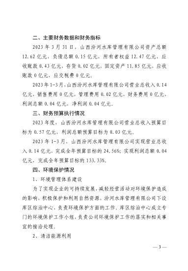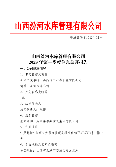 山西汾河二庫管理有限公司2023年第一季度信息公開...
