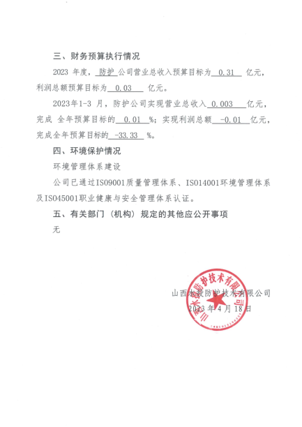 2023年一季度財(cái)務(wù)等重大信息公開(kāi)報(bào)告