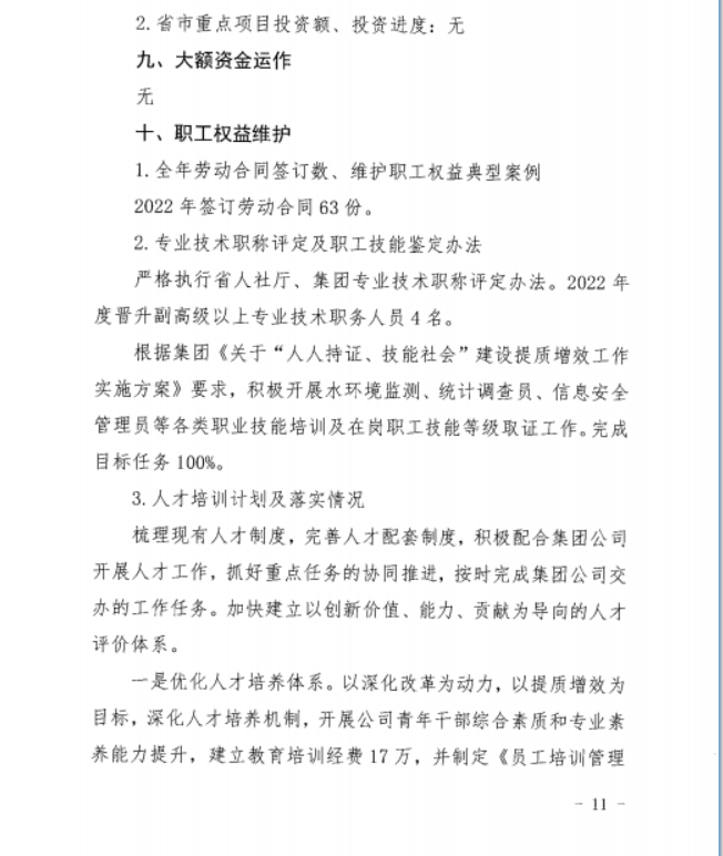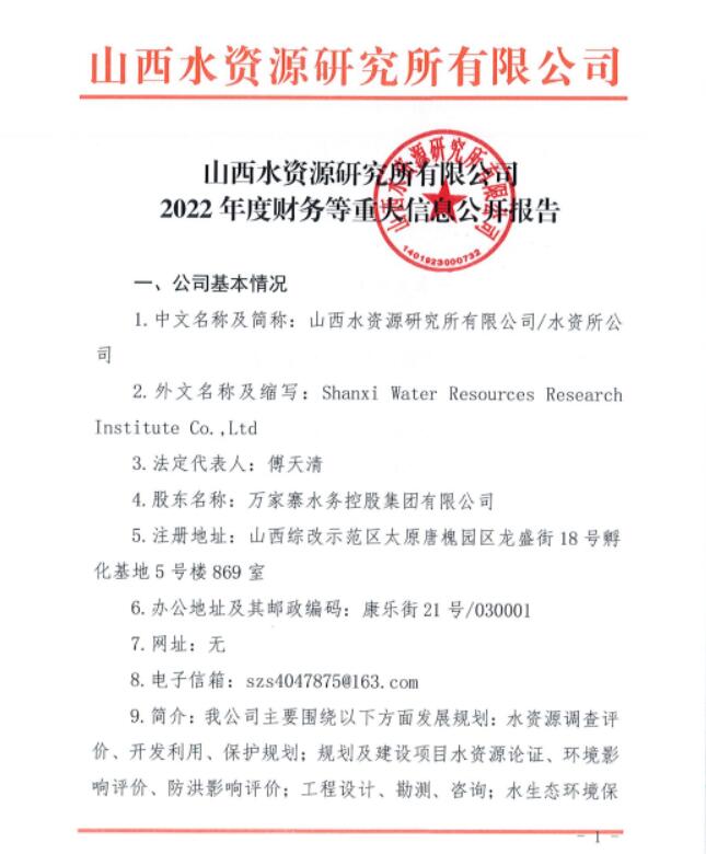 山西水投碧源水處理有限公司2022年度財(cái)務(wù)等重大信...