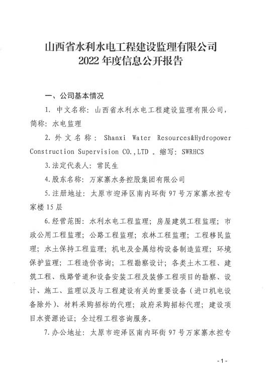 山西萬(wàn)家寨水控工程投資有限公司2022年度信息公開(kāi)...