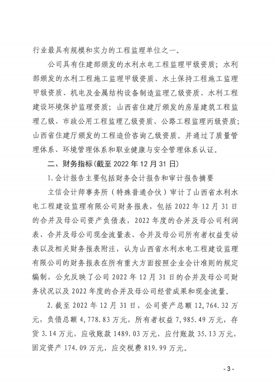 山西水投汾景水務(wù)有限公司2022年度財(cái)務(wù)等重大信息...