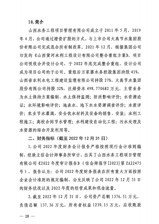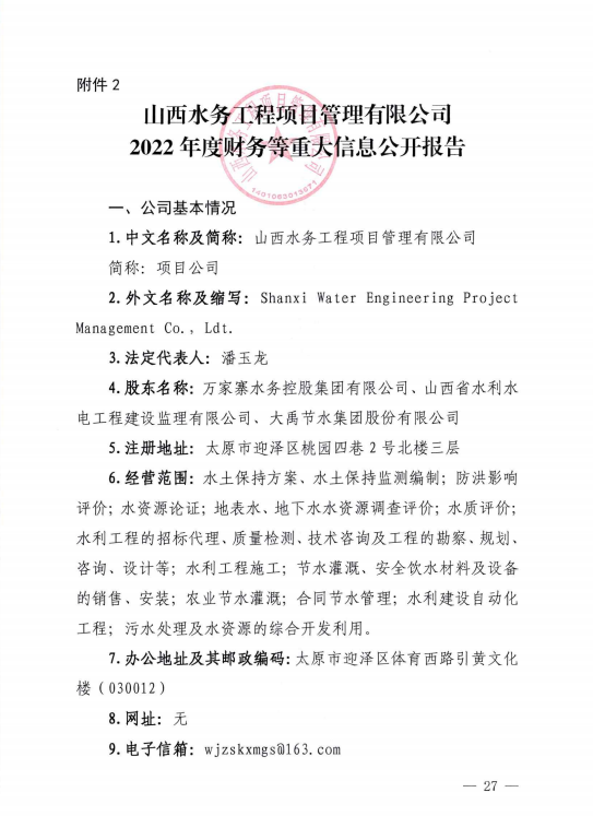 山西汾河一壩管理有限公司2022年度財務等重大信息...