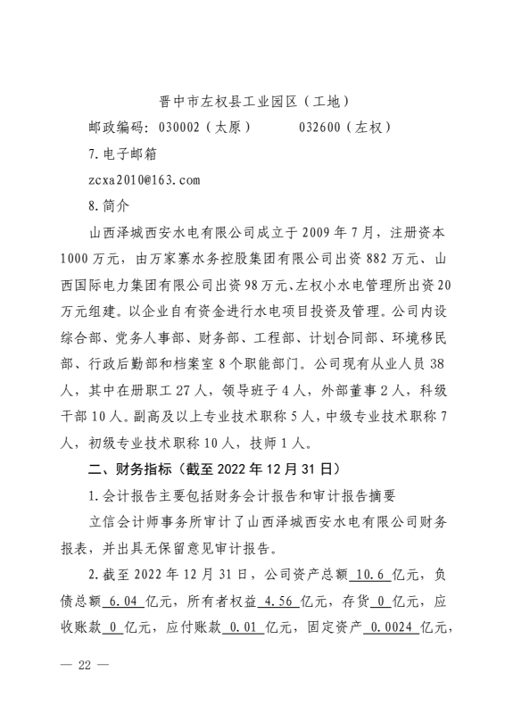 山西東山水務(wù)集團(tuán)有限公司2022年度財務(wù)等重大信息...