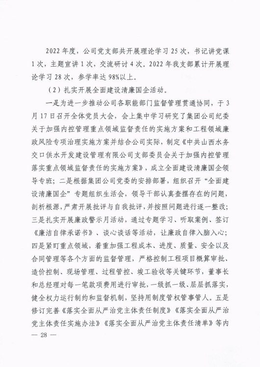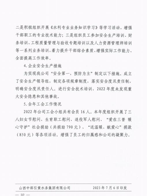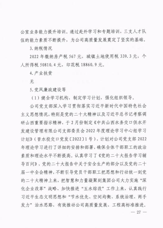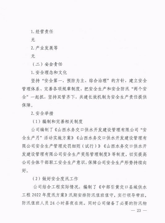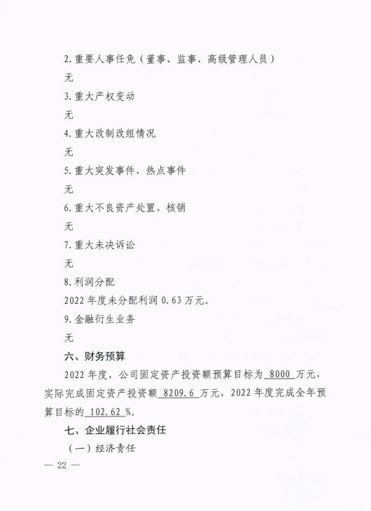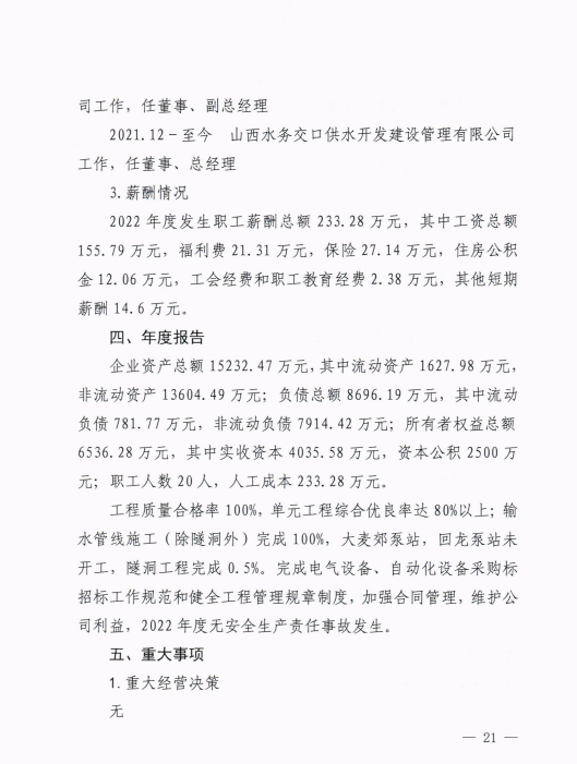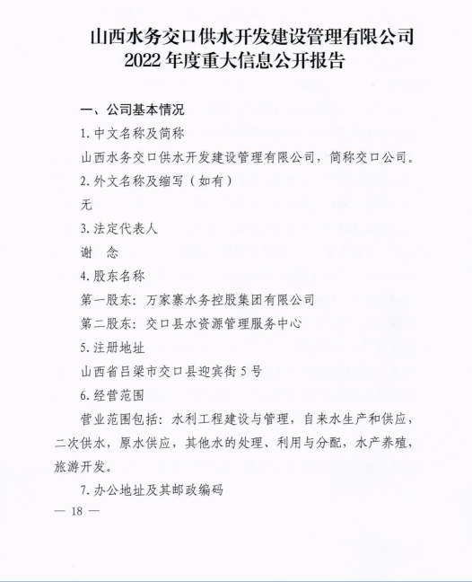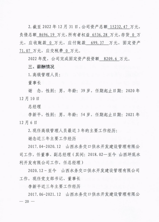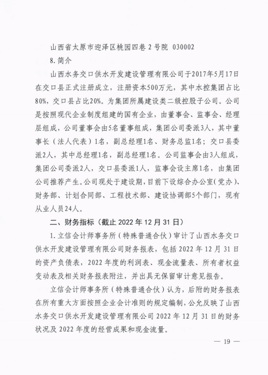 山西汾河灌溉管理有限公司2022年度財務等重大信息...