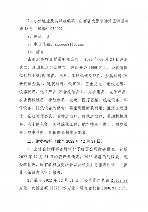 山西萬家寨水控實業(yè)發(fā)展有限公司2022年度財務(wù)等重...