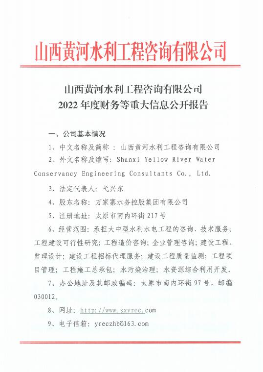 山西汾河流域管理有限公司2022年度財(cái)務(wù)等重大信息...