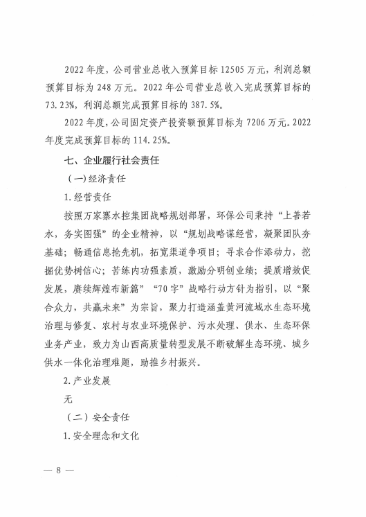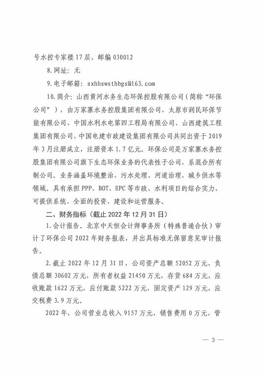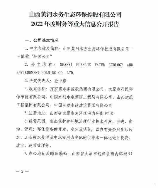 山西汾河水庫管理有限公司2022年度財務等重大信息...