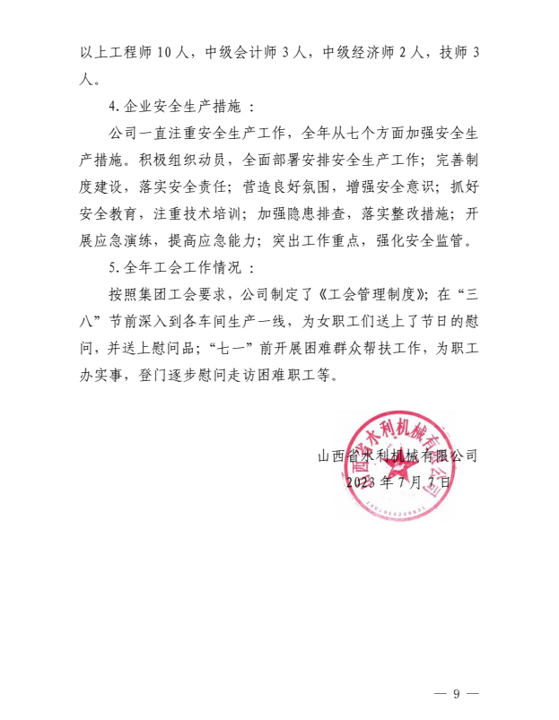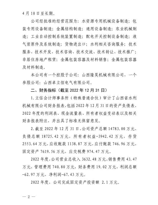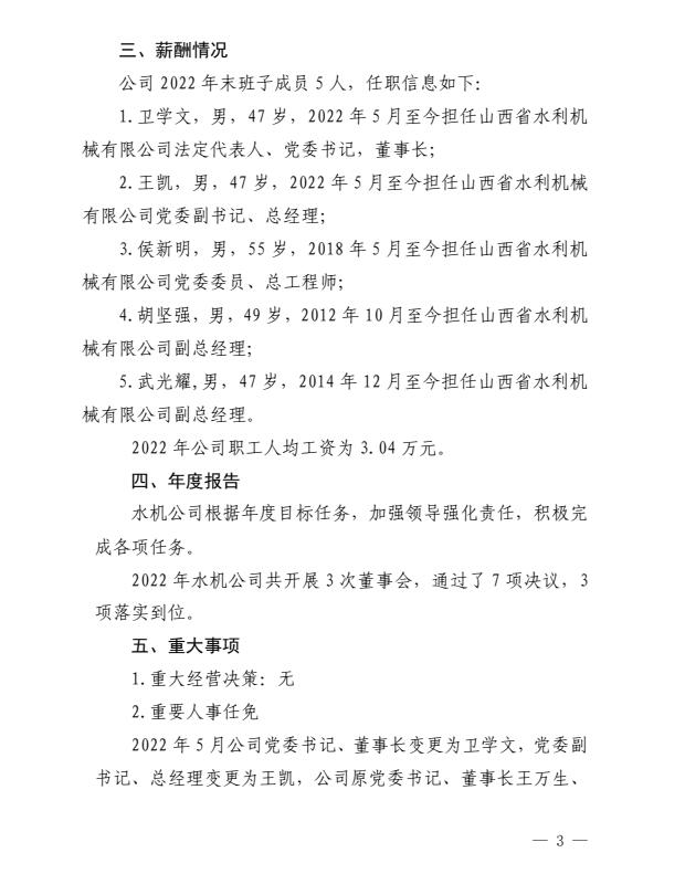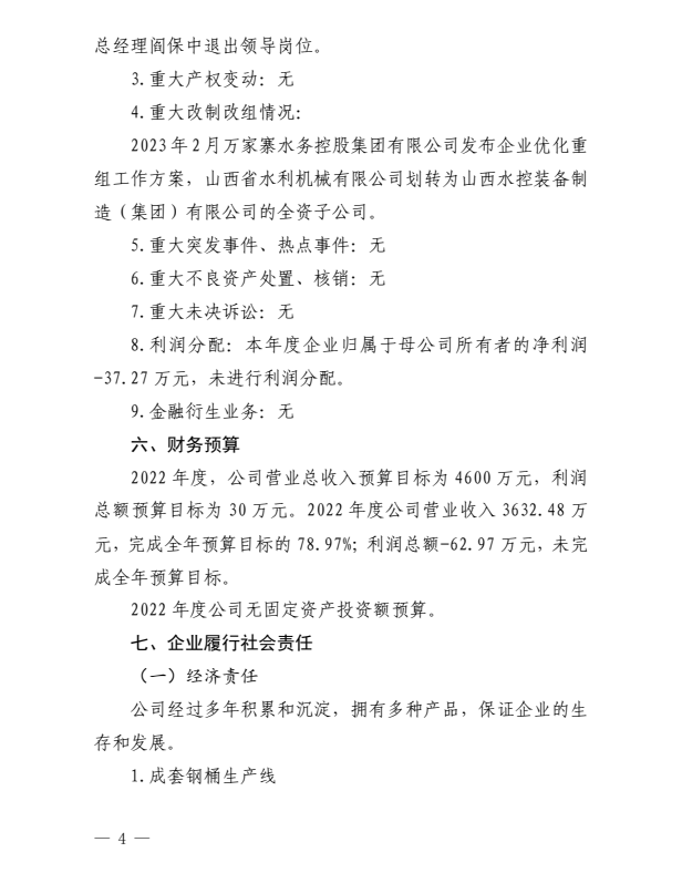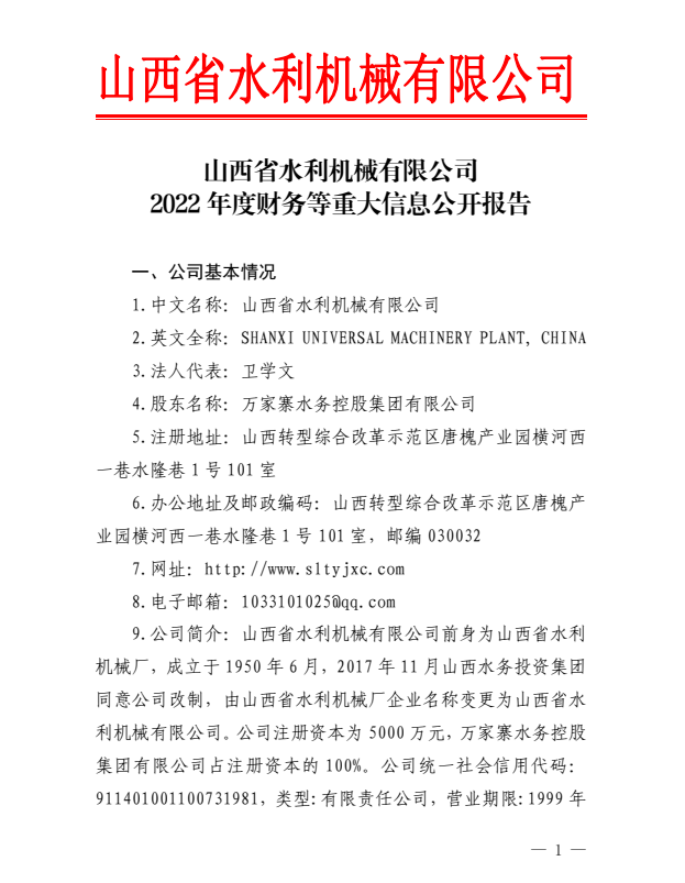 山西省水工機(jī)械有限公司2022年度財(cái)務(wù)等重大信息公...