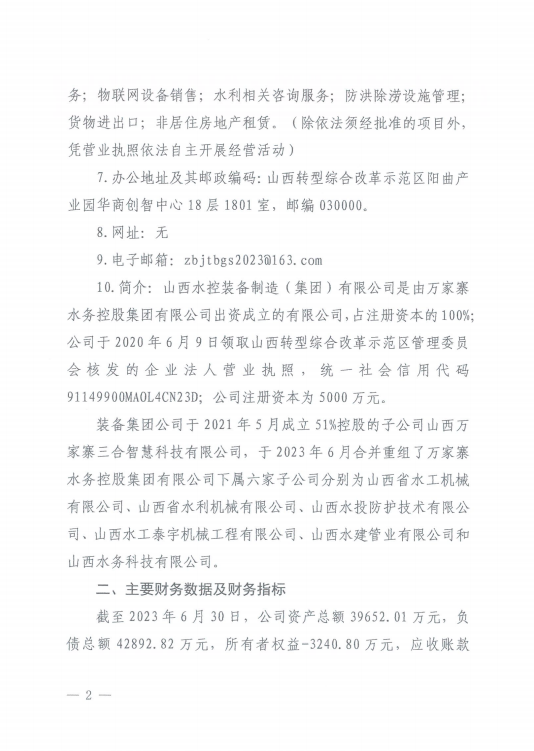 山西汾河二庫管理有限公司2022年度財務(wù)等重大信息...