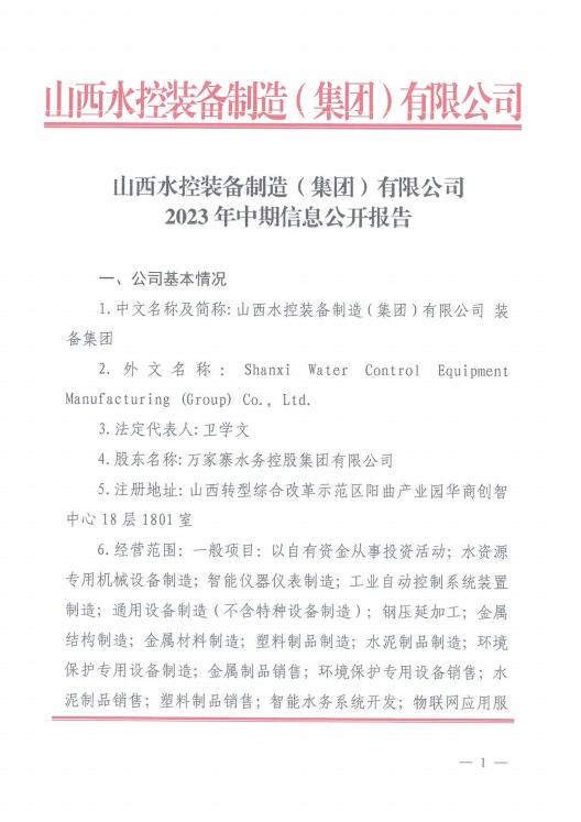 山西柏葉口水庫管理有限公司2023年中期信息公開報...