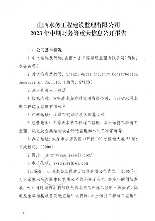 山西水利建設(shè)開發(fā)咨詢有限公司2023年中期信息公開...
