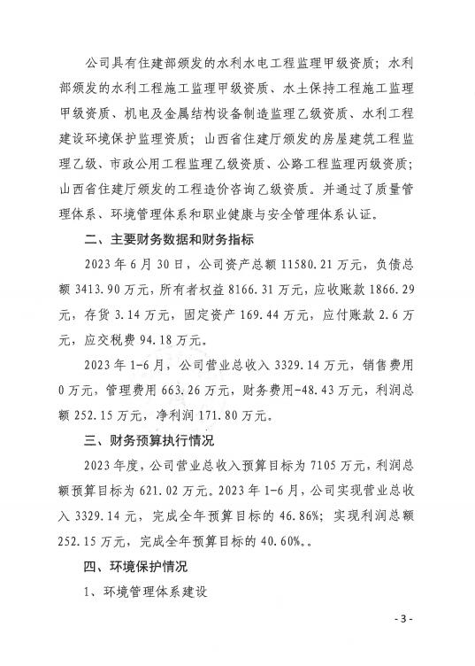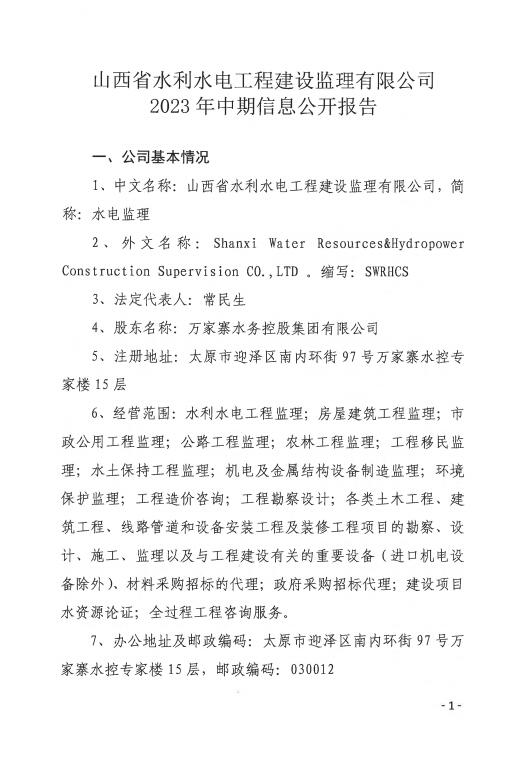 山西水利建設開發(fā)咨詢有限公司2023年中期信息公開...