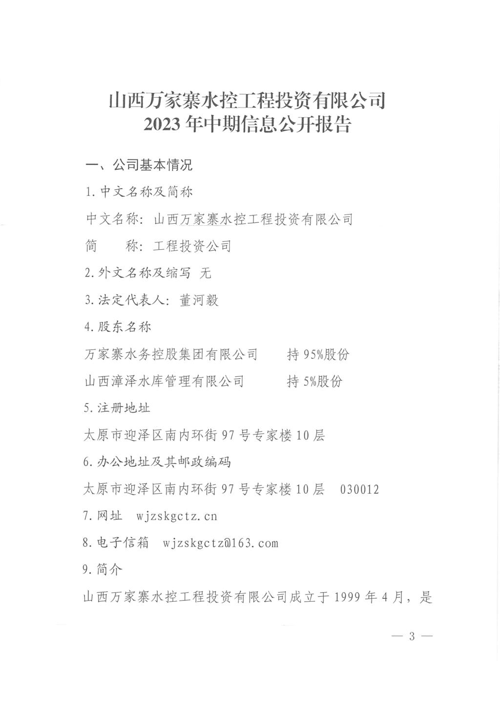 山西沁河水務(wù)集團(tuán)有限公司2023年中期信息公開報告