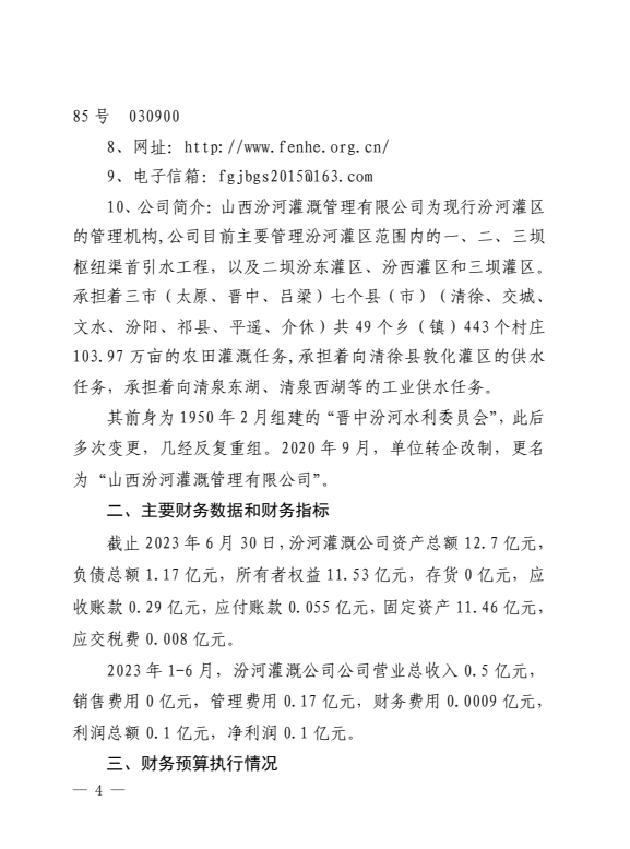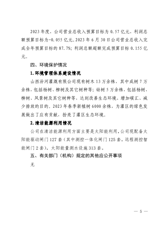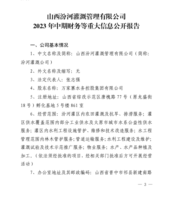 山西沁河水務(wù)集團(tuán)有限公司2023年中期信息公開(kāi)報(bào)告