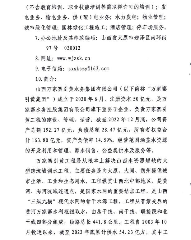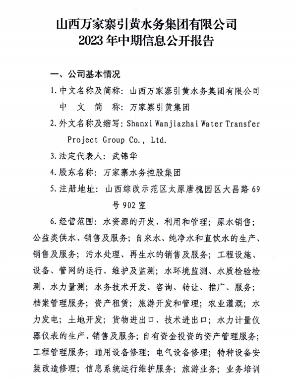 山西禹門口引黃水務(wù)集團有限公司2023年中期信息公...