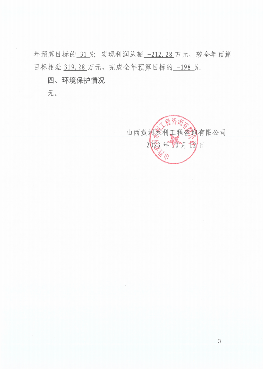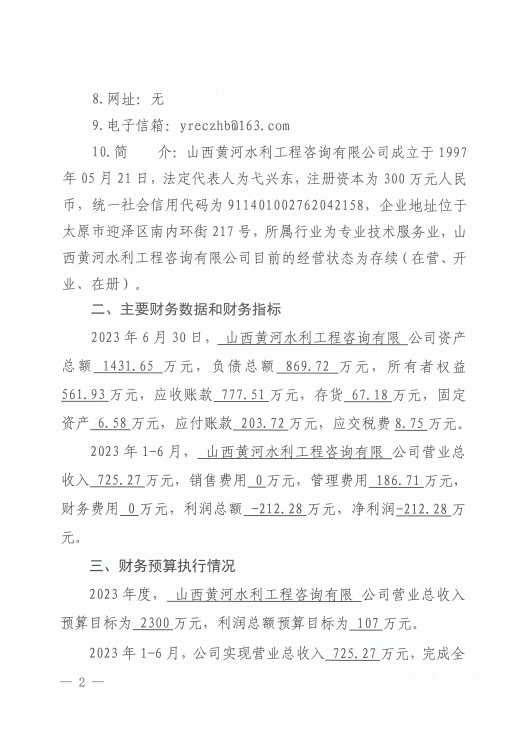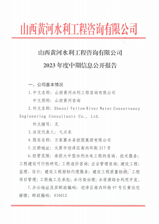 山西黃河水利工程咨詢有限公司2023年第三季度信息...