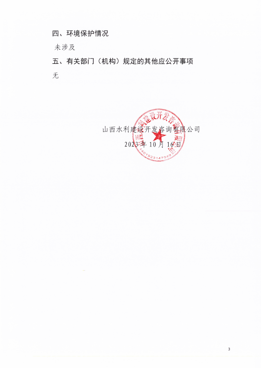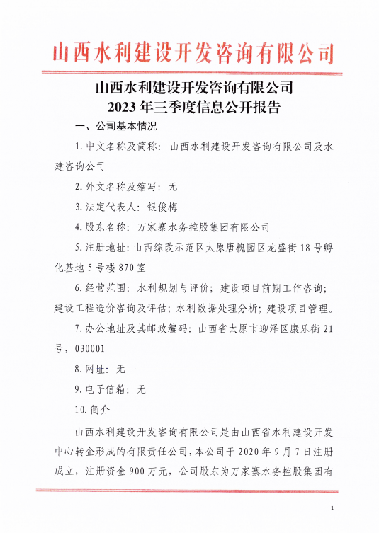 山西黃河水利工程咨詢有限公司2023年第三季度信息...
