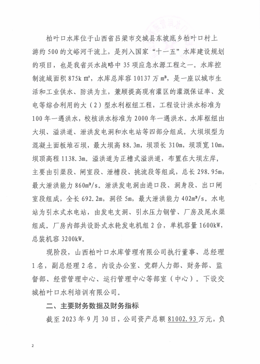 山西水利建設(shè)開發(fā)咨詢有限公司2023年三季度信息公...