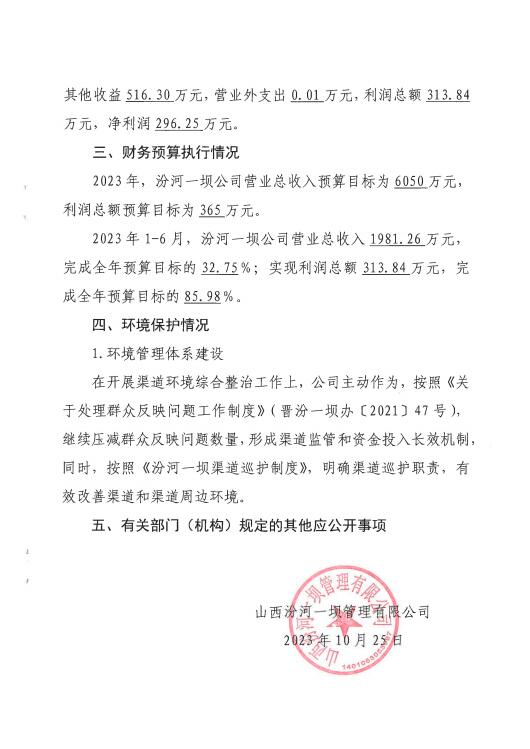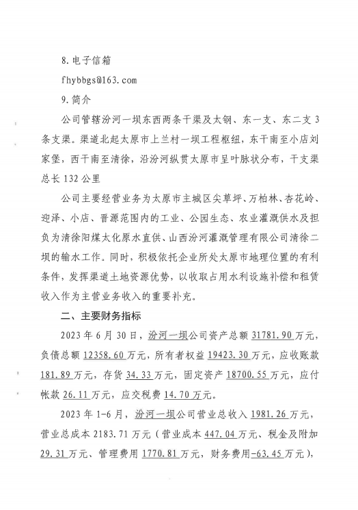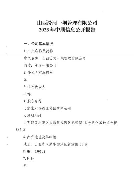 山西中部引黃水務(wù)集團(tuán)有限公司2023年中期信息公開...