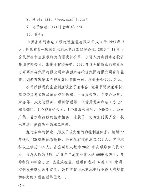 山西省水利水電工程建設(shè)監(jiān)理有限公司