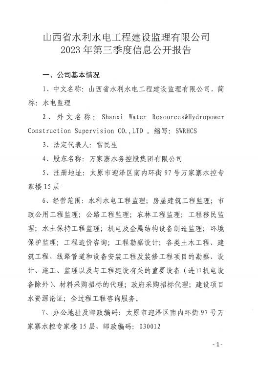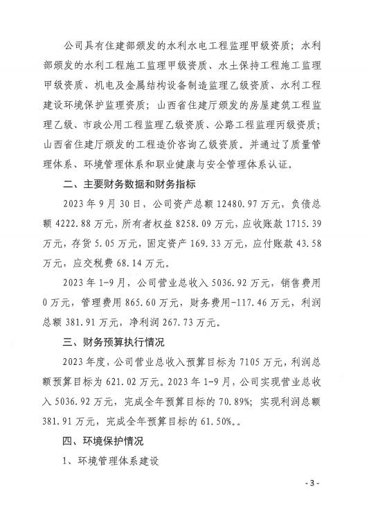 山西水務工程建設(shè)監(jiān)理有限公司2023年第三季度財務...