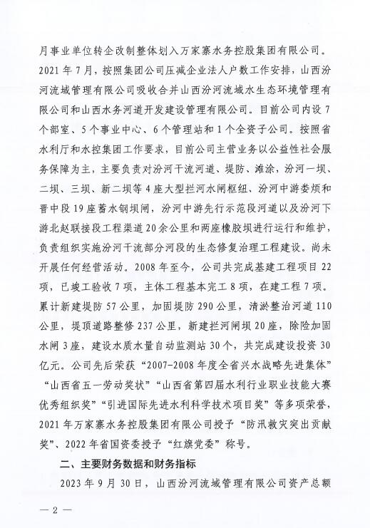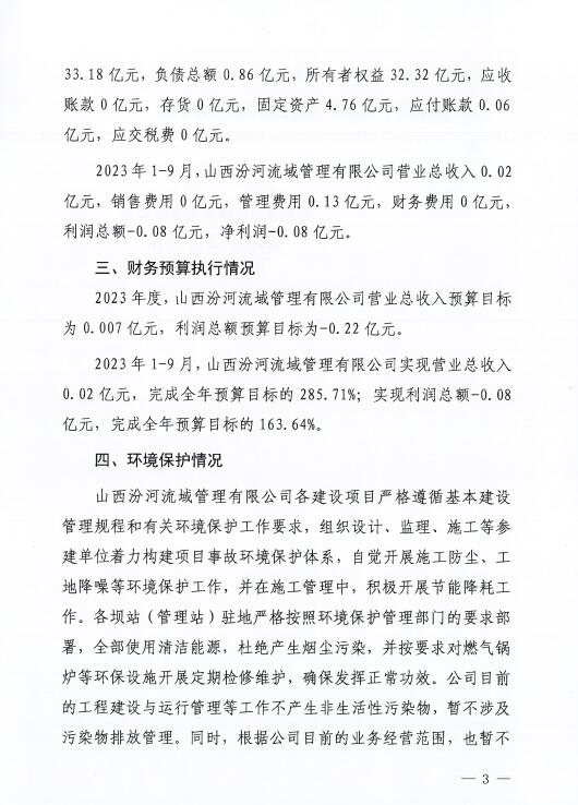 山西汾河灌溉管理有限公司2023年第三季度財務(wù)等重...