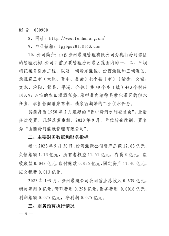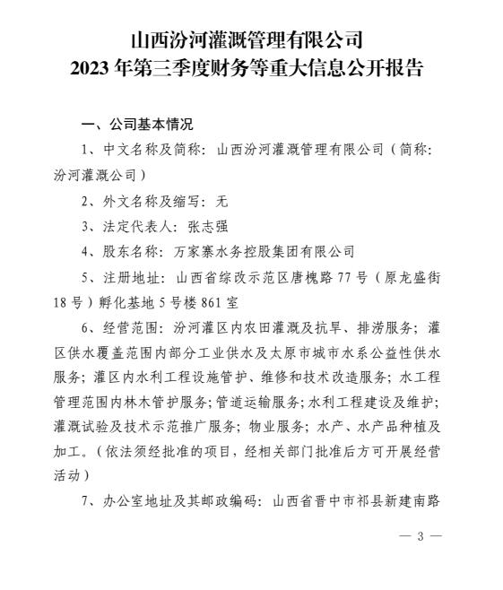 山西汾河流域管理有限公司2023年第三季度財(cái)務(wù)等重...