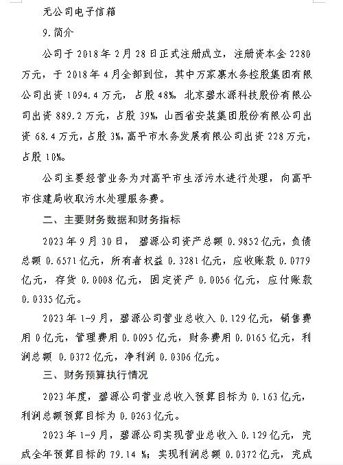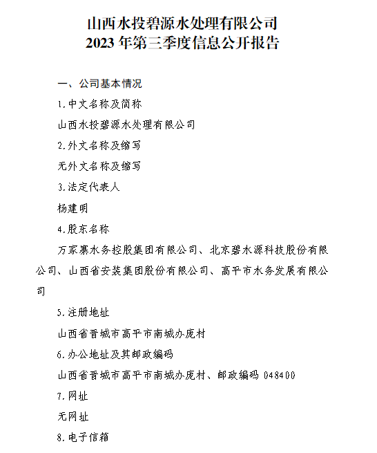 山西水務集團建設投資有限公司2023年中期信息公開...