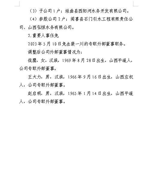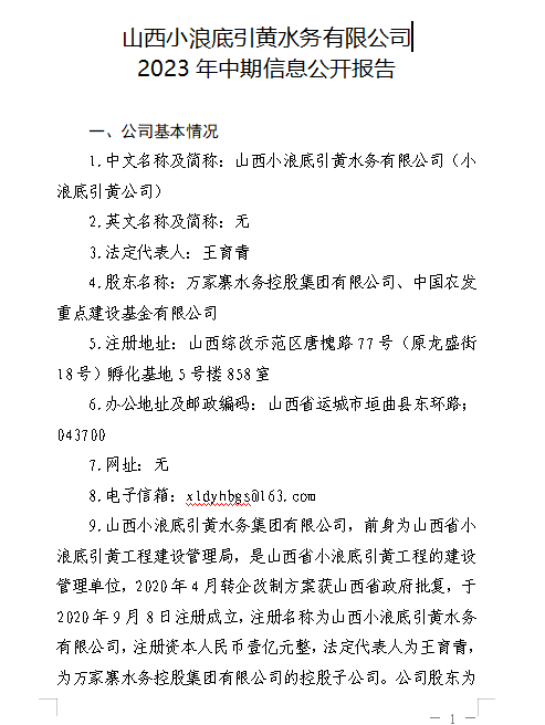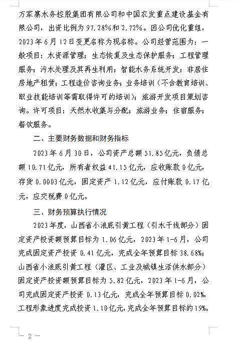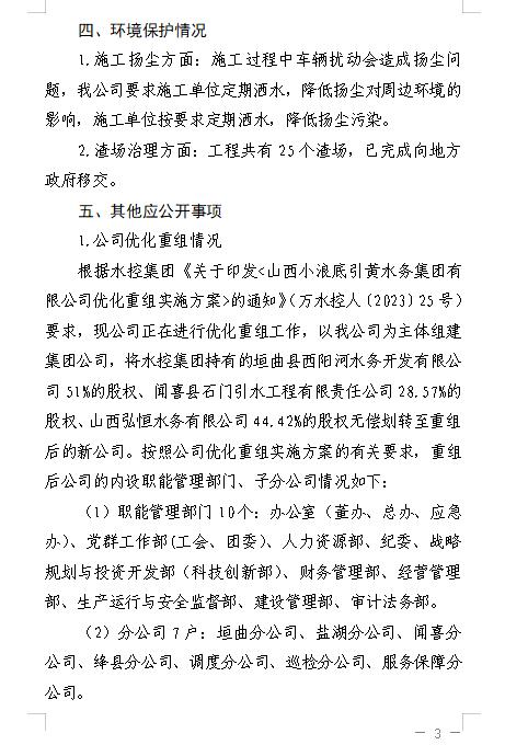 山西水務集團建設投資有限公司2023年第三季度信息...
