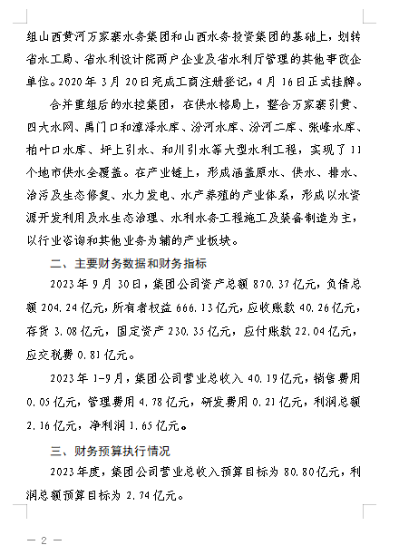 山西萬家寨水控工程投資有限公司2023年第三季度信...