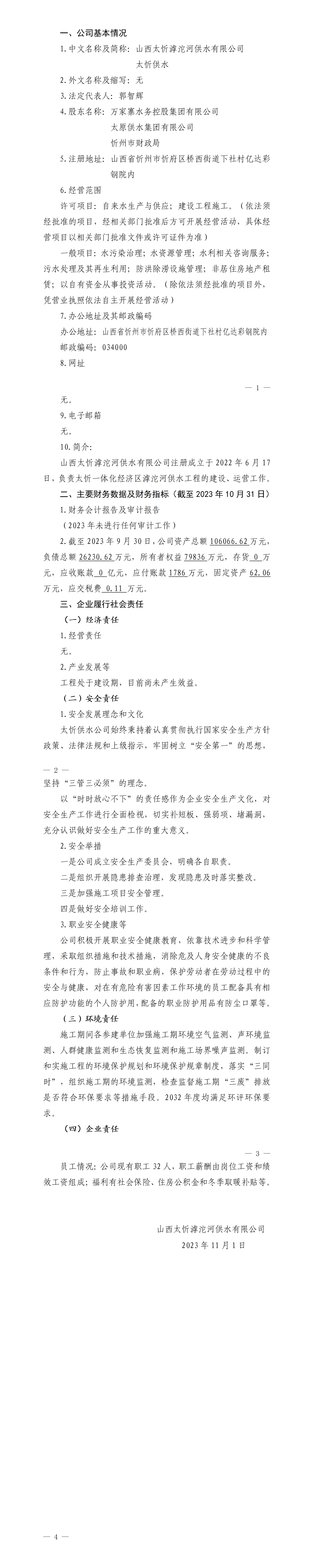 山西太忻滹沱河供水有限公司2023年中期財務等重大...