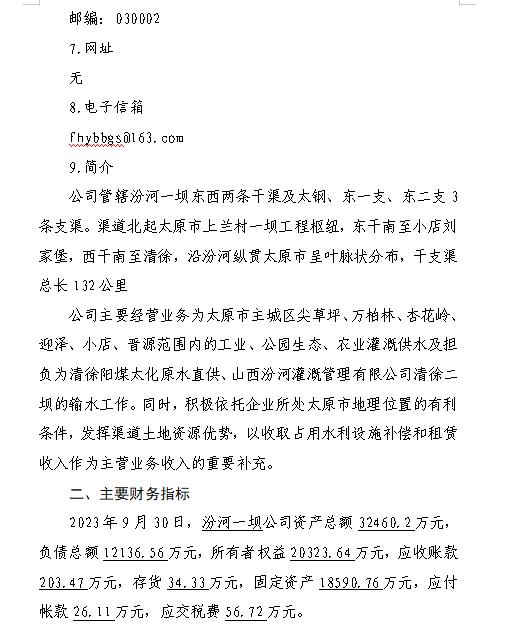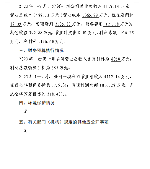 山西滹沱河管理有限公司2023年三季度信息公開報告