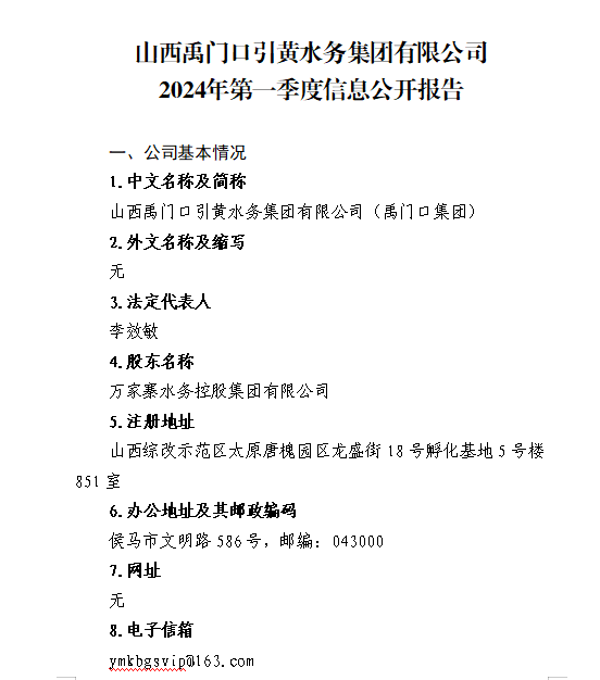 山西水利建設(shè)開發(fā)咨詢有限公司2024年第一季度信息...