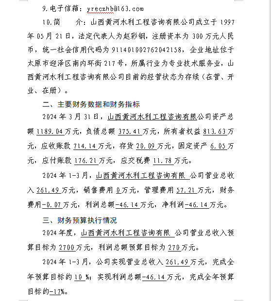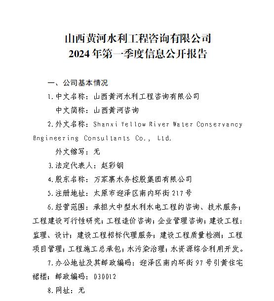 山西水利建設(shè)開發(fā)咨詢有限公司2024年第一季度信息...