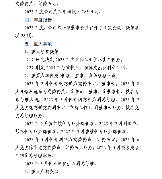 山西中部引黃水務集團有限公司2024年第一季度信息...